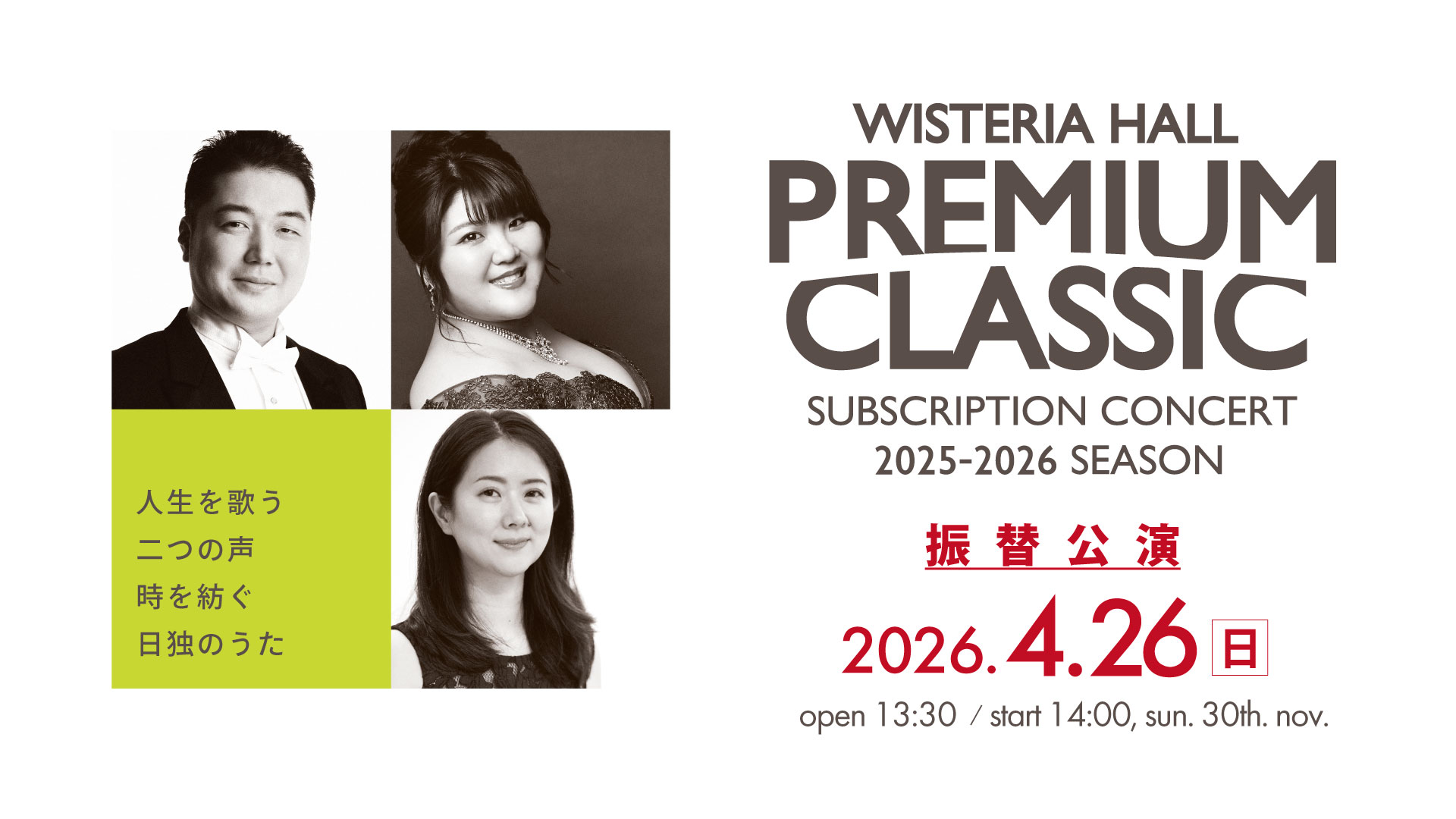 日時 2026年4月26日(日)13:30開場 14:00開演